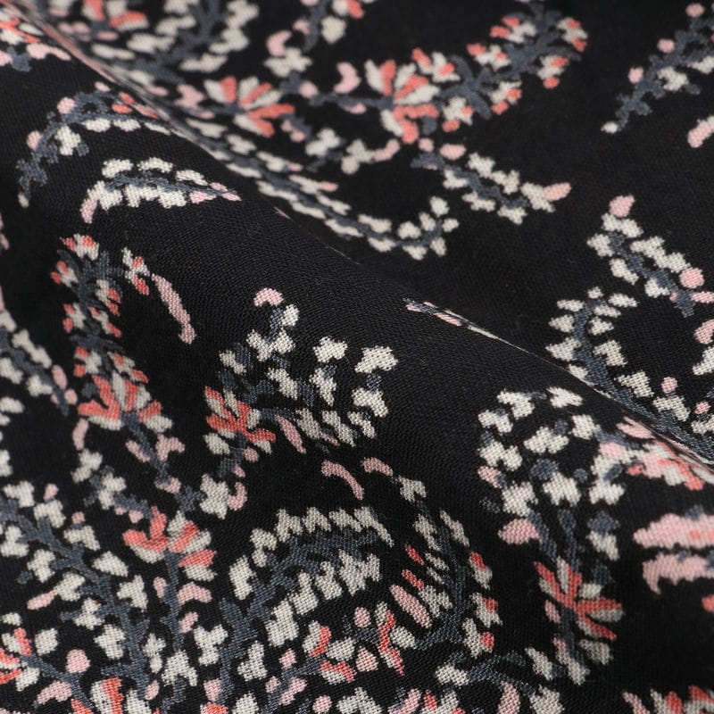 Black And Pink Floral Pattern Screen Print Cotton Fabric