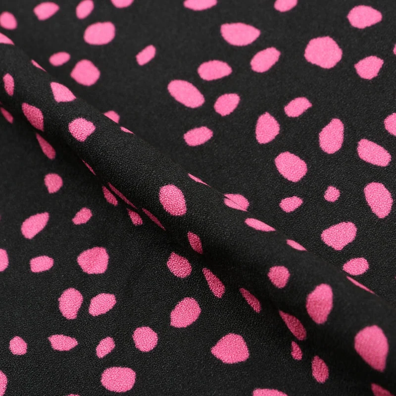 Black And Pink Stone Pattern Screen Print Moss Crepe Fabric