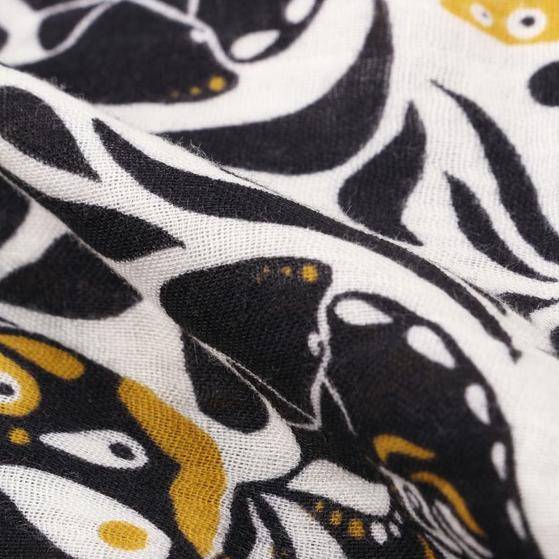 Black And White Bird Pattern Screen Print Mul Cotton Fabric