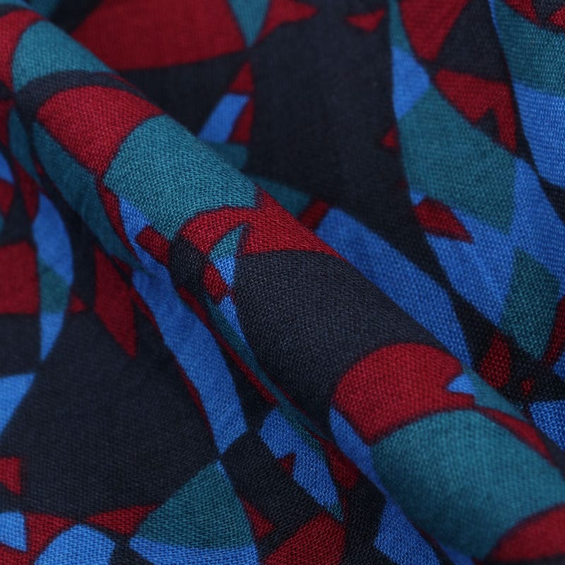 Blue And Maroon Abstract Pattern Screen Print Cotton Fabric