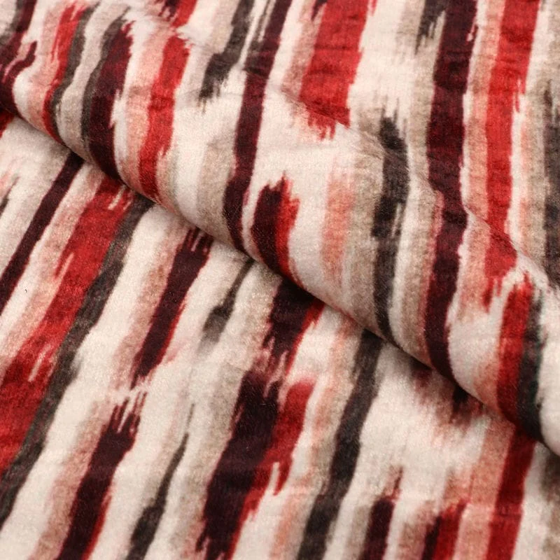 Brick Red And White Abstract Pattern Digital Print Velvet Fabric