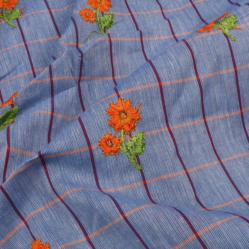 Light Lavender And Orange Checks Pattern Dyed Embroidery Cotton Fabric