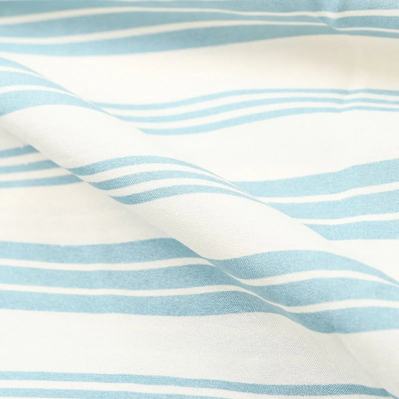 Off White And Blue Stripes Pattern Screen Print American Crepe Fabric