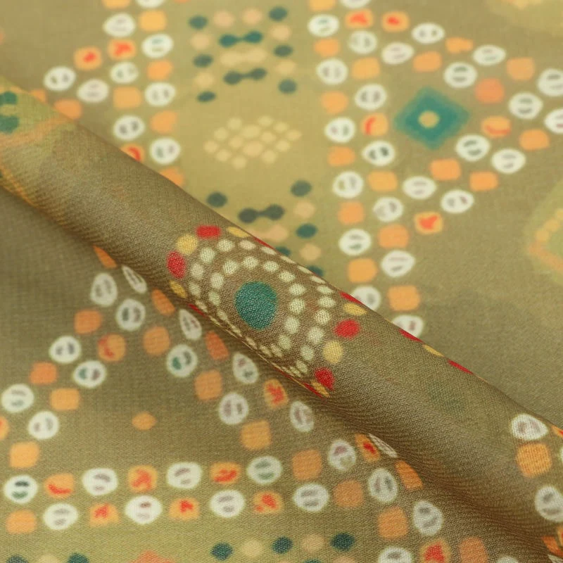 Olive Green And Red Bandhani Pattern Digital Print Georgette Fabric