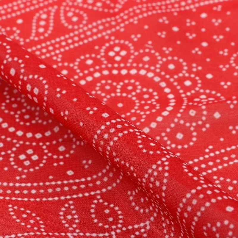 Red And White Bandhani Pattern Digital Print Georgette Fabric