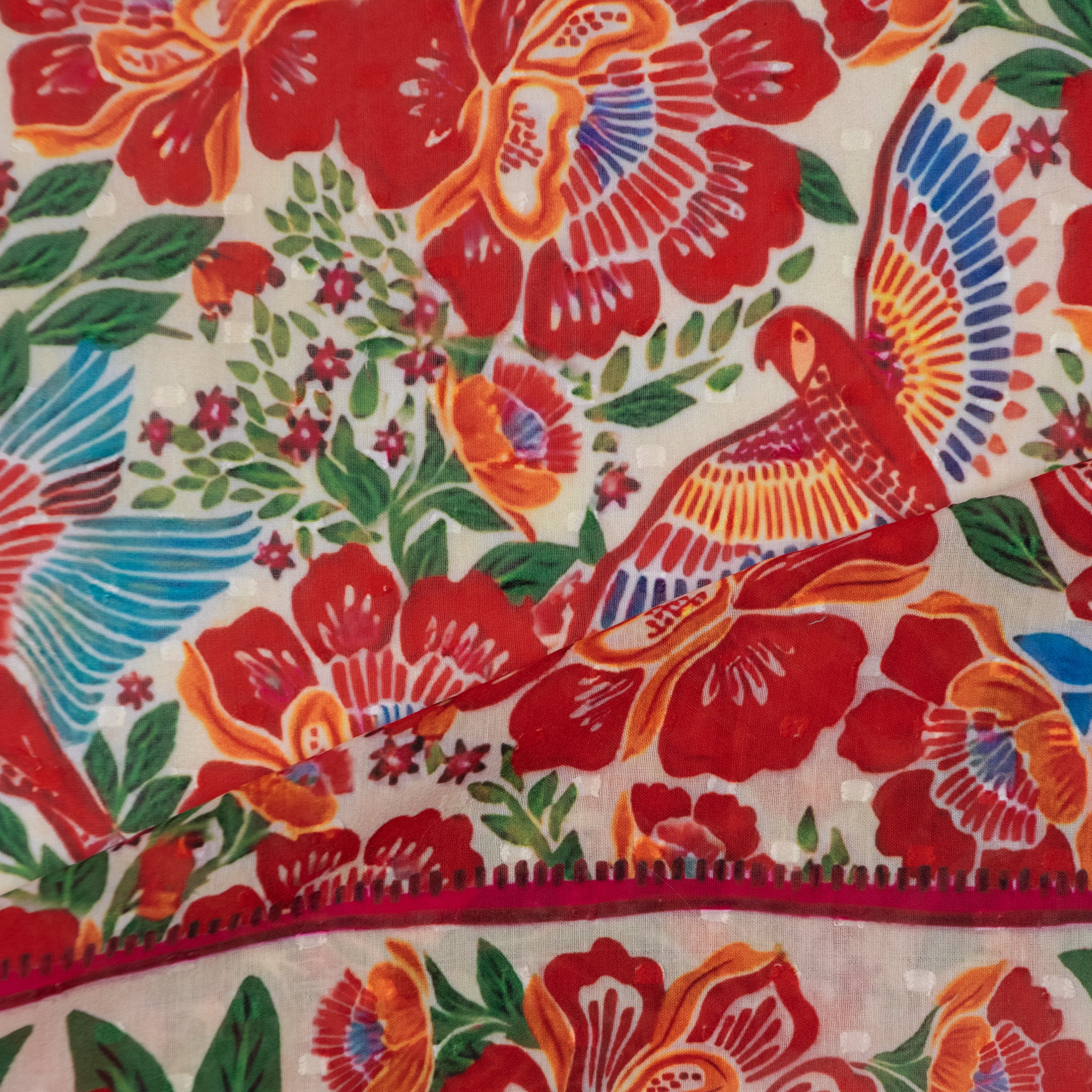 Tropical Floral and Bird Cotton Dobby Digital Print Fabric