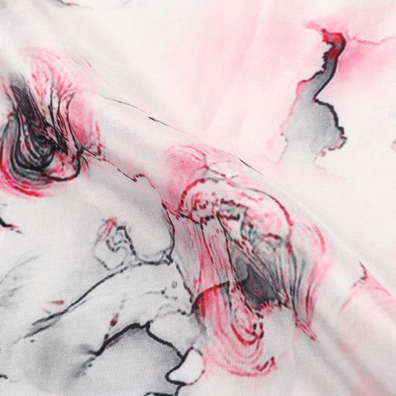 White And Pink Abstract Pattern Digital Print Silk Crepe Fabric